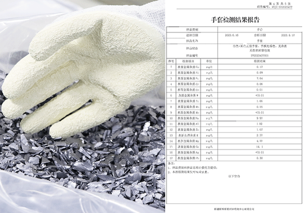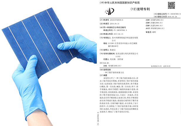 手套經(jīng)過特殊工藝處理,通過驗證將手套放置氮氣柜當中80H,手套接觸產(chǎn)品無任何氧化情況,經(jīng)權(quán)威機構(gòu)檢測氯元素及硫元素完全符合接觸電池片標準,且不會在電池片上面留下任何指印。